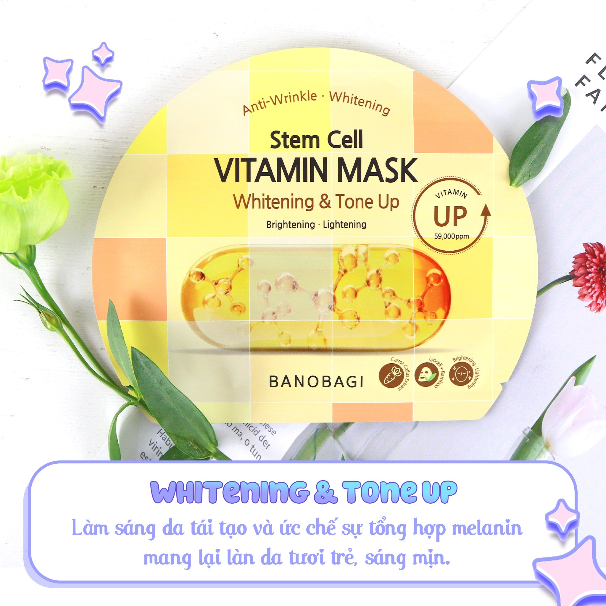 3. Mặt Nạ Giấy Banobagi Stem Cell Vitamin Mask 30g mẫu mới Stem Cell Whitening & Tone Up: