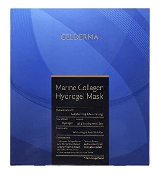 Mặt Nạ Thạch Celderma Marine Collagen Hydrogen Mask 30g - màu xanh là dòng mask dưỡng da đang rất “hot hit” đến từ thương hiệu Celderma của Hàn và được giới trẻ đón nhận, ủng hộ nhiệt tình. Mang đến hai công dụng nổi bật là dưỡng trắng và hạn chế sự xuất hiện của nếp nhăn. Bên cạnh đó, sản phẩm còn giúp cấp ẩm sâu và nuôi dưỡng cho bạn một làn da khỏe mạnh, mềm mại, bóng mượt.